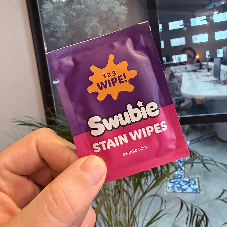 Niet met Swubie! Trek een doekje uit het zakje, wrijf over de vlek en watch the magic happen!